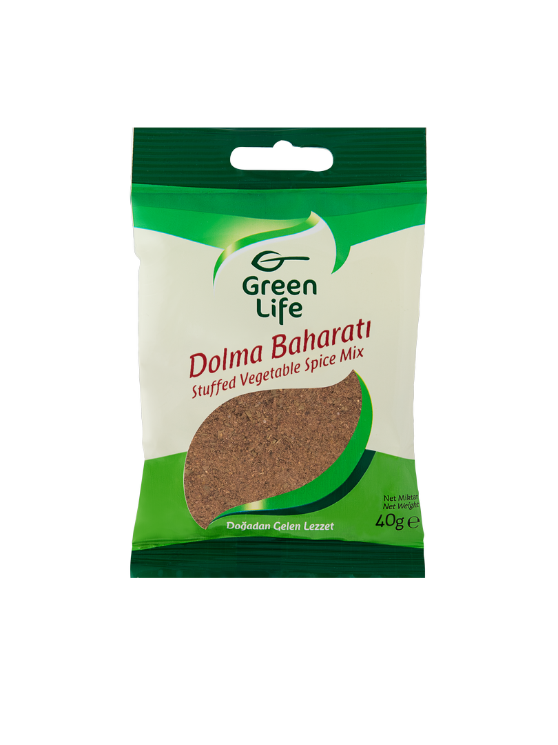 Green Life Zeytinyağlı Dolma Baharı, ideal lezzette zeytinyağlı dolmalar pişirebilmeniz için hazırlanmış, Green Life’a has ufak dokunuşlar içeren özel bir baharat karışımı. İçeriğinde yenibahar, nane, tuz, toz zencefil, toz karabiber, şeker, fesleğen, tatlı kırmızıbiber, soğan tozu, dereotu, karanfil ve pul biber bulunuyor. Green Life Zeytinyağlı Dolma Baharı’nı, soğan, çam fıstığı, pirinç ve kuş üzümlerini zeytinyağında kavurduktan sonra tencereye ekleyip karıştırarak dolma harcınızı kolaylıkla hazırlayabilirsiniz.